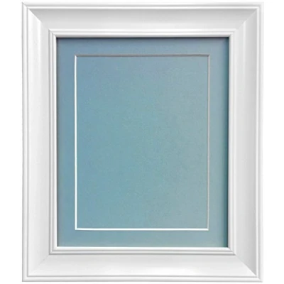 Scandi Vintage White Picture Photo frame with Blue Mount and Backing Board 6 x 4 for Pic Size 3 inch