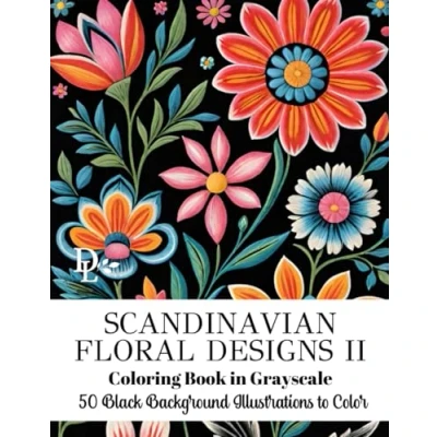 Scandinavian Floral Designs II Coloring Book in Grayscale: 50 Black Background Illustrations to Color (Scandinavian Books)