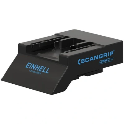 General description The SCANGRIP® CONNECT Einhell Connector allows the use of 18V/20V battery packs from major brands such as Milwaukee, Dewalt, and Makita with SCANGRIP work lights. This connector is designed for easy installation and provides a versatile power solution for your work lights. Technical specifications Compatible with 18V/20V batteries from various brands Includes a safety system with automatic discharge protection Overload protection and temperature monitoring Approved by TÜV Rheinland for safety and quality Compatibility and accessories Designed for use with batteries from brands such as BERNER, BOSCH, DEWALT, EINHELL, FESTOOL, FLEX, HAZET, HIKOKI, INGERSOLL, MAKITA, MILWAUKEE, PANASONIC, RIDGID, SNAP-ON, WÜRTH, and HILTI Each connector is sold separately and tailored to specific brands Installation Attach the connector to the SCANGRIP work light Connect your compatible 18V/20V battery to the connector Ensure the connection is secure before use Usage Use the connected