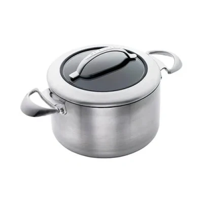 This Scanpan CTX 20cm Dutch Oven with Lid has a 5-ply multi-layer construction of aluminium and stainless steel for optimum heat distribution without hot spots. Perfect for casseroles, stews and roasts. Suitable for all hob types, including induction, this Dutch oven is also oven proof up to a temperature of 260°C. The Stratanium non-stick coating is PFOA and PFOS-free, metal utensil safe and offers exceptional performance for perfect cooking results. In fact Scanpan's Stratanium non-stick coating is so good it is designed for fat-free frying so you only ever need add oil or fat for flavouring purposes, making it a healthy choice for the kitchen.The stylish brushed steel exterior contrasts beautifully with the black interior. The two riveted handles transfer very little heat and the stylish steel lid with its glass centre is also oven proof to 260°C. Designed and manufactured in Denmark this 20cm casserole has a capcity of 3.5L, a height of approximately 12cm (without lid) and a base diameter of 16.2cm. Hand wash recommended.Supplied with a 10 year Scanpan guarantee.