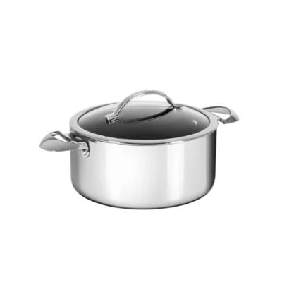 The Scanpan HaptIQ 24cm (4.8L) Casserole with lid is made from a composite five-layer construction for strength and durability.Suitable for use on all heat sources (including induction), this HaptIQ casserole is also oven proof up to 260°C (including the lid). A steel layer provides extra strength whilst the aluminium core offers optimal heat distribution.A commercial grade Stratanium+ non-stick coating provides exceptional searing and food release, making it remarkably easy to clean. It also allows fat-free frying for a healthier lifestyle.This versatile 24cm casserole from Scanpan can be used for stews, casseroles, roasting meat - you can even bake bread in it.HaptIQ cookware is made in Denmark and has been created for those who demand the best in terms of performance and style.This Scanpan HaptIQ 24cm casserole with lid has a base diameter of 20cm, weighs 3.05kg and is supplied with a lifetime warranty against manufacturing defects.Handwash recommended.