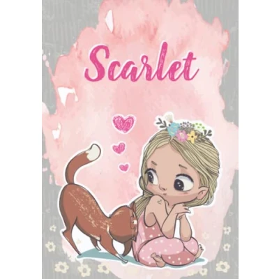Scarlet: Notebook A5 Personalized name Scarlet Birthday gift for women, girl, mom, sister, daughter ... Cute little girl with cat 120 lined pages journal, small size (ca. 6 x 9 inches)