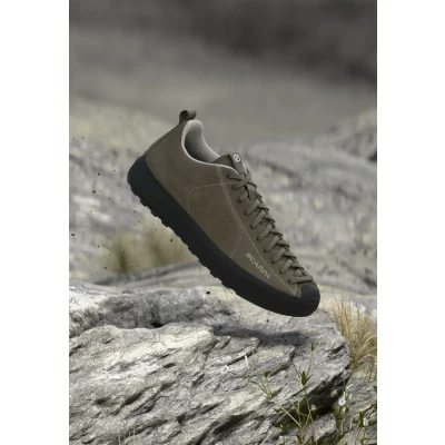 EU Size 9.5 | US Size 10-10.5 Men/11-11.5 Women | It's a Wrap | The Original Hybrid Urban Approach Shoe from Scarpa now features a rubber rand that wraps around the shoe for greater durability. Vibram rubber sole | Reliable traction thanks to the medium-sized studs of Vibram rubber. Suede Upper | Durable leather upper with a smooth and soft feel, coupled with a climbing inspired lace-up closure for a perfect fit. City to Trail Friendly Features | Compression molded EVA midsole maintains shock-absorbing cushioning. The tip provides additional protection in the event of an occasional approach. Features | [Best Use] Casual; [Upper] Suede (1.8mm); [Lining] Eco Stretch Textile; [Midsole] EVA-CM; [Outsole] PRES URB-05; [Weight] (½ pair size 42) 346g