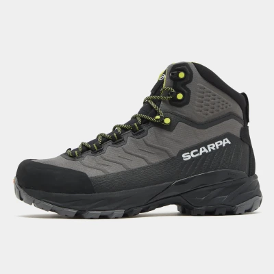 Mountain hikers and long-distance trekkers are no strangers to foot fatigue. The dull ache after a long day battling every type of terrain the British countryside can throw at you. Thankfully Scarpa have designed the Men's Rush Trek Gore-Tex Hiking Boot with a huge emphasis on comfort and anti-fatigue. The shock-absorbing Interactive Kinetic System (IKS) takes the impact so your feet don't have to, while the padded Autofit 3D collar increases your stability and reduces strain to prolong comfort on long walks. A GORE-TEX Extended Comfort membrane has been used to deliver long-lasting waterproof and breathable protection. There's also a thick rubber rand that deflects trail debris as you move. Optimised for mountain use, the boots also feature a pronounced heel and deep lugs that improve grip even when travelling up and down steep sections. Water resistant suede and mesh uppers GORE-TEX Extended Comfort membrane - waterproof and breathable Padded Autofit 3D collar - reduces strain and stabilises foot Activ Fit technology - guaranteed comfort Rubber toe rand protects against rocky terrain Anti-torsion DST chassis aids stability Shock-absorbing Interactive Kinetic System (IKS) Presa sole with Supergum rubber for optimal grip Pronounced heel and hiking-oriented lugs