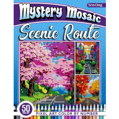 Scenic Route Mystery Mosaics Color by Number: 50 Pixel Art Journeys Through Breathtaking Roads