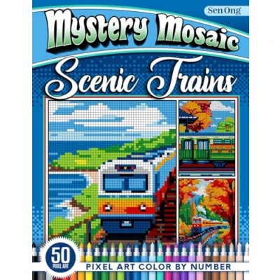 Scenic Trains Mystery Mosaics Color by Number: 50 Pixel Art Train Journeys Through the Seasons