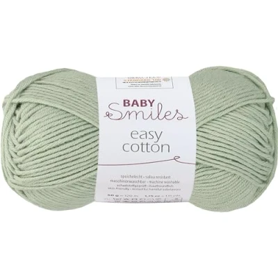 Baby Smiles Easy Cotton is a year-round yarn, 50% cotton and 50% polyacrylic, especially suitable for baby clothing The Baby Smiles collection especially for babies is skin-friendly, non-toxic, machine washable, Oeko-Tex Standard 100 certified Easy Cotton is available in a pretty variety of colours from delicate pastels to stronger fashion colours Thanks to the addition of polyacrylic, the yarn is extremely easy to clean and has a wonderfully soft feel Box contents: 1 x Baby Smiles Easy Cotton, design: 50 g, length: 120 m, tension sample: 10 x 10 = 22 m x 30 R, needle size: 3 - 4 mm