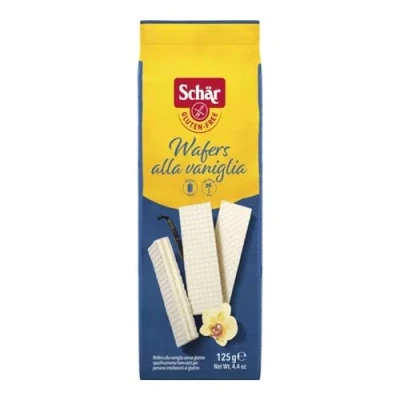 Schar Gluten Free Vanilla Wafers are light, crisp wafers layered with velvety vanilla filling, offering a gluten-free, wheat-free, and preservative-free treat. Perfect for mindful snacking, they contain no trans fats and are suitable for those with celiac disease or gluten sensitivities.