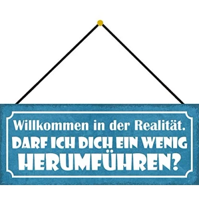 Amazon Made in Germany Format 27 x 10 cm, curved, 4 holes High quality metal sign made from strong sheet steel Excellent print with lacquer finish Rounded corners and folded edges