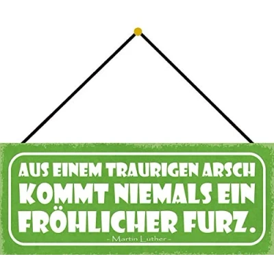 Made in Germany Format 27 x 10 cm, curved, 4 holes High quality metal sign made from strong sheet steel Excellent print with lacquer finish Rounded corners and folded edges