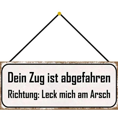 Made in Germany Format 27 x 10 cm, curved, 4 holes High quality metal sign made from strong sheet steel Excellent print with lacquer finish Rounded corners and folded edges