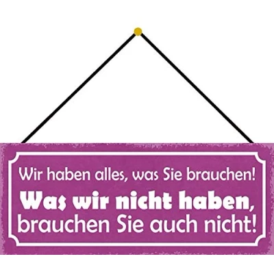 Made in Germany Format 27 x 10 cm, curved, 4 holes High quality metal sign made from strong sheet steel Excellent print with lacquer finish Rounded corners and folded edges