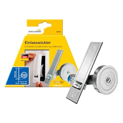 Robust entry roller for roller blinds up to 2.3 m high Maxi roller blind system, hole spacing 160 mm Max. 5.3 m of tape length and 23 mm of tape width Prestressed spring, mounting depth adjustable between 115 and 135 mm Can be individually expanded with a separately available Schellenberg cover plate, Manufacturer: Alfred Schellenberg GmbH