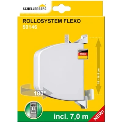 Winder for roller shutters with hinge housing Includes extra long roller shutter belt - ideal for windows or floor doors on the ceiling Surface mounting on wall or window projection Mini roller shutter system with 14 mm width Variable hole spacing from 150 mm to 165 mm, Manufacturer: SCHELLENBERG