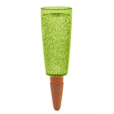 The elegant water reservoir with pearl pattern for additional watering of plants in the living and garden area Dimensions: width at the top outside: 9 cm, depth at top: 6.5 cm, height: 18 cm, weight: approx. 120 g Easy to use: 1. Water plant as usual. 2. Insert water reservoir into the moist soil. 3. Fill water reservoir with watering water Made of high-quality, UV-resistant plastic with pearl pattern and a water-permeable clay cone Provides the plant for up to 4 days depending on size and location
