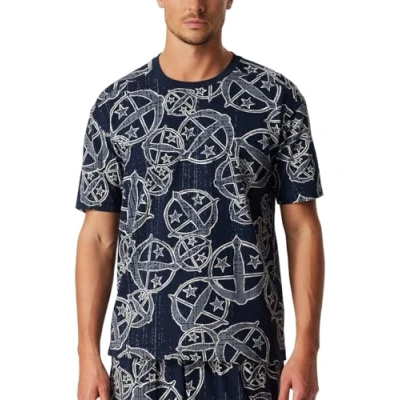 Blue short-sleeved shirt for men with white Schiesser crossbow statement print in high-quality single jersey quality made from 100% best organic cotton From the Schiesser series "Schiesser 150 Years" Modern, casual cut with distinctive, pre-drawn shoulder seams Round, ribbed neck edge Our models are 187 cm or 185 cm tall and are wearing a size 5/M