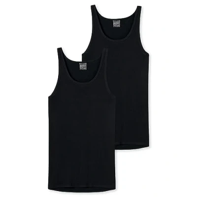 Schiesser Men's Pack of 2 Vests Without Sleeves Original fine Rib Underwear, Black_005121, M/5