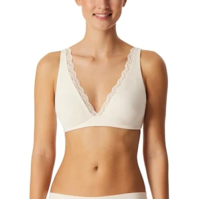 AmazonSoft bra without underwire in off-white From the Schiesser "Unique Cotton" series Feminine Spitzenband am Dekolleté Sliding, moulded cups Variable, supple straps