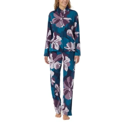 Schiesser Women's Pyjama Set Long with Button Placket Modal Cotton Mix Modern Nightwear Pajama, Multicolor 4_181895, 14