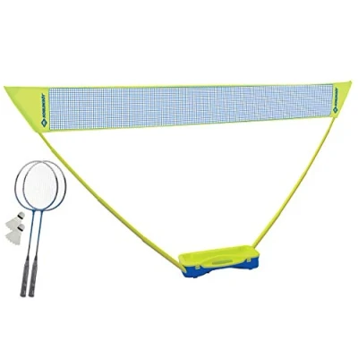 Schildkröt's Compact Badminton Set is an absolutely innovative badminton set New type of free-standing net set that is not fixed with pegs or anything similar. It must be installed on hard surfaces or even indoors Includes 2 hardened steel badminton rackets, closed T-piece, Multi-filament string, double eyelets Includes 2 plastic shuttlecocks with white plumage and medium speed Everything packed in a practical plastic case