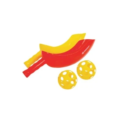 2 scoopball bats (length 40 cm) in red and yellow plastic 2 balls with 9cm diameter Scoop Ball promotes coordination and improves responsiveness All in a resealable mesh bag Schildkröt skill game