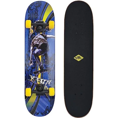 Schildkröt Skateboard Slider 31'', Full Leisure Board, Concave Deck with Double Kick and Grip Tape, ABEC7 Bearings, Design: Cool King, 510643