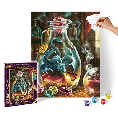 Schipper 602100453 Nummer Numbers The Dragon Pictures for Adults, Includes Brush and Acrylic Paints, 40 x 50 cm, Multicoloured, 40x50 cm