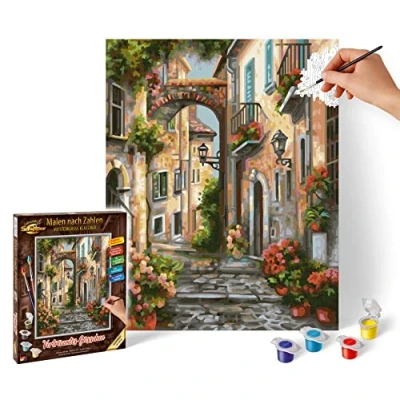 Schipper 602100493 buildings Numbers Dreamy Alleys Pictures for Adults, Including Brushes and Acrylic Paints, 24 x 30 cm, Multi Coloured, Mittel
