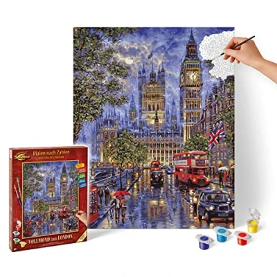 Schipper 609130873 Paint by Numbers Full Moon Over London Painting Pictures for Adults Including Brush and Acrylic Paints 40 x 50 cm