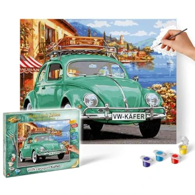 Schipper 609130912 Paint by Numbers Volkswagen Beetle Painting Pictures for Adults, Includes Brush and Acrylic Paints, 40 x 50 cm