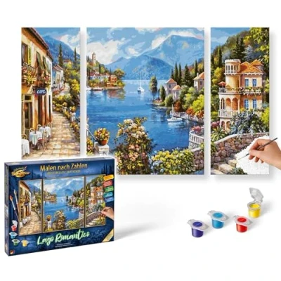 Schipper 609260818 Painting by Numbers Lago Romantico Pictures for Adults Including Brush and Acrylic Paints Triptych 50 x 80 cm