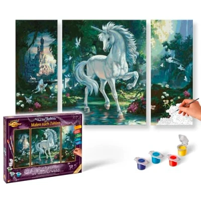 Schipper 609260866 Painting by Numbers Unicorn in Enchanted Forest Pictures for Adults Including Brush and Acrylic Paints Triptych 50 x 80 cm