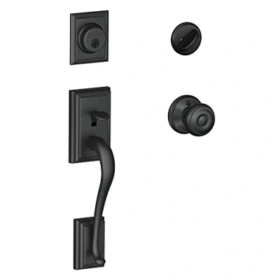SCHLAGE Addison Single Cylinder Lever Handleset and Georgian Knob, Matte Black (F60 ADD 622 GEO) Lock Company