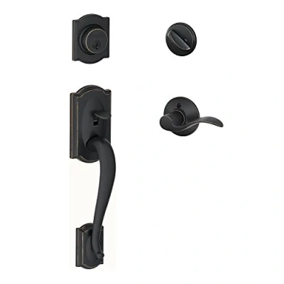 SCHLAGE Camelot Single Cylinder Handleset and Left Hand Accent Lever, Aged Bronze (F60 CAM 716 Acc LH) Lock Company