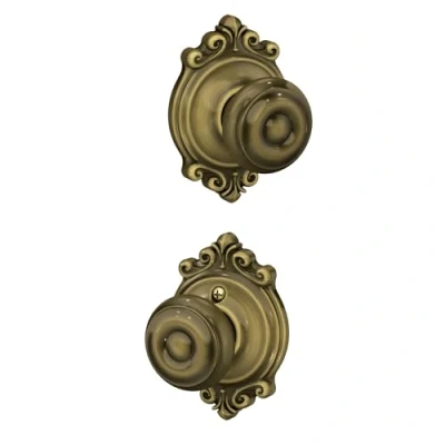 SCHLAGE F10 GEO 609 BRK Brookshire Collection Georgian Passage Knob, Antique Brass Lock Company