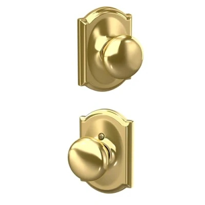 Schlage F10 PLY 605 CAM Camelot Collection Plymouth Passage Knob, Bright Brass