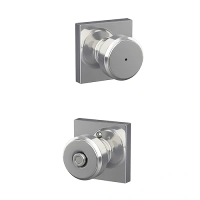 SCHLAGE F40 BWE 625 COL Bowery Knob with Collins Trim Bed & Bath Privacy Door Lock, Bright Chrome