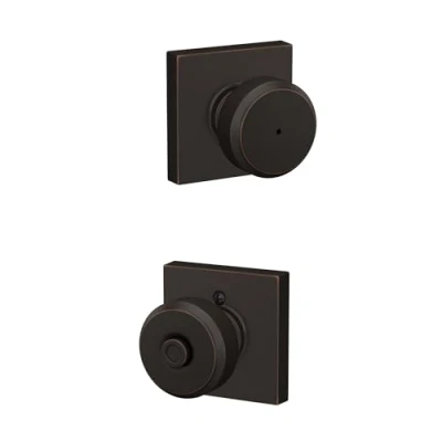 SCHLAGE F40 BWE 716 COL Bowery Knob with Collins Trim Bed & Bath Privacy Door Lock, Aged Bronze