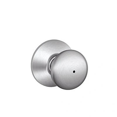 Use on a 1-3/8 in. to 1-3/4 in. thick door Universal latch and Triple Option faceplate fit standard door preparations Privacy knob, with push-button lock, for use on an interior bathroom or bedroom door All-metal chassis for durability Satin chrome finish, Weight: 1.1 Pounds, Manufacturer: Schlage