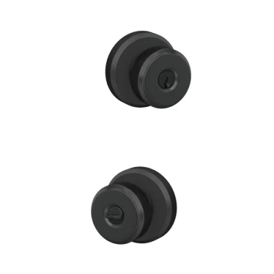 SCHLAGE F51ABWE622GSN Bowery Door Knob with Greyson Trim Keyed Entry Lock, Matte Black