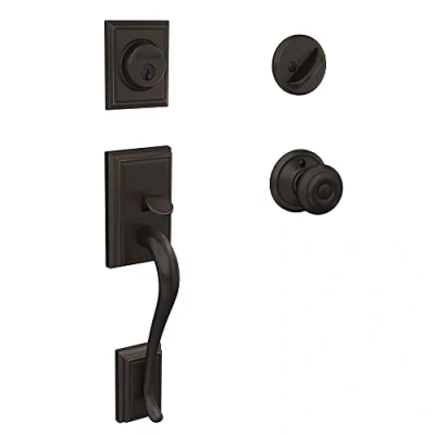 Schlage F60 V ADD 716 GEO Addison Handle Set with Georgian Knob Interior, Aged Bronze