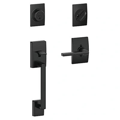 SCHLAGE F60CEN622LATCEN Century Front Entry Handleset with Latitude Lever Deadbolt Keyed 1 Side, Matte Black