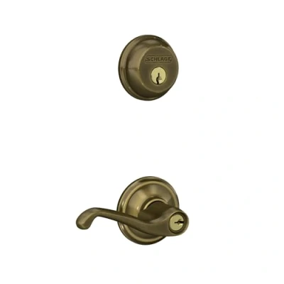 Schlage F51A FLA 609 BRK Brookshire Collection Flair Keyed Entry Lever, Antique Brass