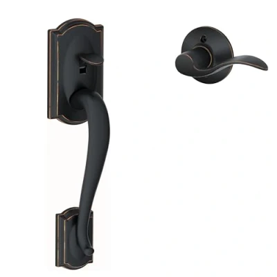 SCHLAGE FE285 CAM 716 Acc LH Camelot Front Entry Handleset with Left Handed Accent Lever, Lower Half Grip, Aged Bronze