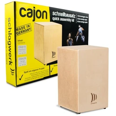 Complete kit for quick construction of a real cajon "DIY" Newly developed and precisely prefabricated components tie down straps Quick-drying adhesive Dimensions: 50 x 30 x 30 cm
