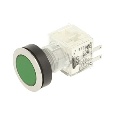 Schlegel Push Button Stainless Steel with Button Cap in Green. Installation opening of diameter 22.3 mm and flat front frame height of 2 mm. Illuminated touch contact sensor with 1 opener, designed for 250 V/6 A and a 24 V LED. Type of connection: Flat connector 2.8 mm x 0.8 mm. IP Rating: IP65. Made in Germany: from the tradition the best has been adopted since 1945.