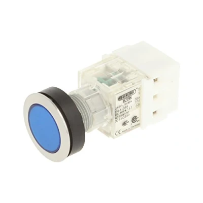 Schlegel push button stainless steel with button cap in blue Installation opening of 22.3 mm and flat front frame height of 2 mm Push contact sensor with 1 opener and 1 N/O contact, designed for 250 V/6 A International products have separate terms, are sold from abroad and may differ from local products, including fit, age ratings, and language of product, labeling or instructions.