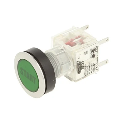 Schlegel push button stainless steel with button cap in green and symbol "START" Installation opening of 22.3 mm and flat front frame height of 2 mm Push contact sensor with 2 openers, designed for 250 V/6 A Connection type: flat plug 2.8 mm x 0.8 mm International products have separate terms, are sold from abroad and may differ from local products, including fit, age ratings, and language of product, labeling or instructions.