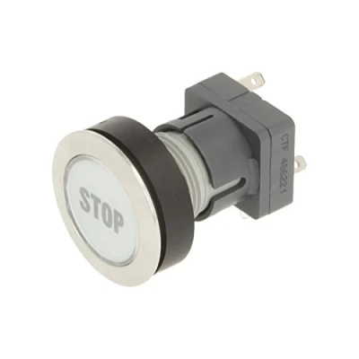 Schlegel push button stainless steel with button cap in clear and symbol "Stop" Installation opening of 22.3 mm and flat front frame height of 2 mm Push contact sensor with 1 changer, designed for 48 V/120 mA Connection type: flat plug 2.8 mm x 0.8 mm International products have separate terms, are sold from abroad and may differ from local products, including fit, age ratings, and language of product, labeling or instructions.