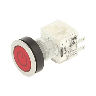 Mallet Push Button Stainless Steel with Button Cap in Red and On/Off Symbol. Installation opening of diameter 22.3 mm and flat front frame height of 2 mm. Illuminated touch contact sensor with 1 opener, designed for 250 V/6 A and a 24 V LED. Type of connection: Flat connector 2.8 mm x 0.8 mm. IP Rating: IP65. Made in Germany: from the tradition the best has been adopted since 1945.